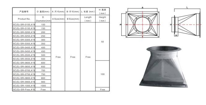 2.Côn thu ống gió : Giúp nối 2 đường ống gió có kích thước khác nhau . | |||||||||
